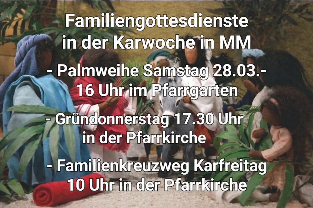 Bringen Sie hierzu bitte eigene Palmzweige (oder Ähnliches) mit. In den Kirchen wird es nur eine geringe Anzahl an Palmzweigen zum Mitnehmen geben.