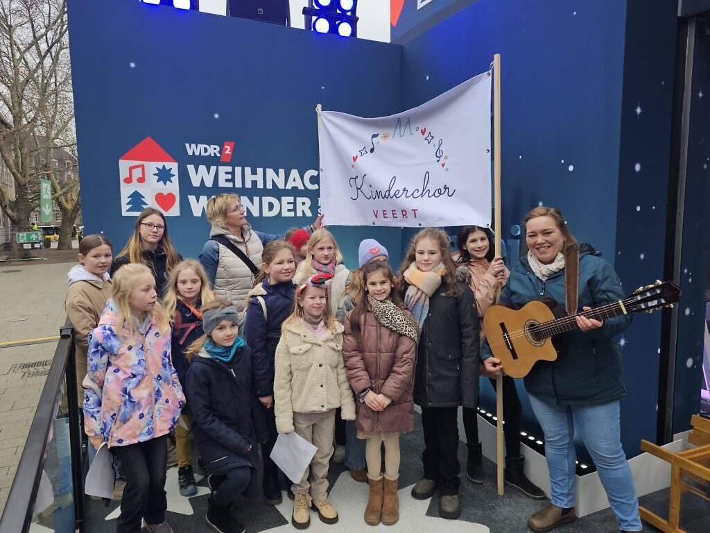 Der Veerter Kinderchor hat bei drei Auftritten in Veert (beim Veerter Winterleuchten mit Jenny Sieben als Organisatorin, bei der Lichterwanderung der Kyffhäuserkameradschaft zur Biermann Mühle und auf der internen Adventsfeier des SV Veert) gesungen und Spenden gesammelt, die am 14.12. im Rahmen einer gemeinsamen Busfahrt nach Essen zum Glashaus des WDR2 Weihnachtswunders gebracht wurden.